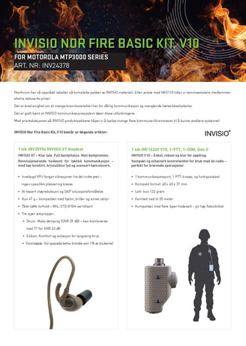 NVISIO Nor Fire Basic Kit V10 er en komplett og robust kommunikasjonsløsning for røykdykkere / bruk med ett samband, som kombinerer sikker tale, effektiv hørselsbeskyttelse og enkel betjening i krevende operative forhold, og selges med stor rabatt gjennom NKS110 rammeavtalen.