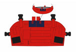 Front/bryststykke: Brukes for rigg av 1-2 samband, INVISIO kontrollenhet V10 eller V60, evt ekstern stor PTT, og kabler til radio. Leveres i blå farge (røykdykkere), og gul/rød for identifikasjon av RDL og IL/O1